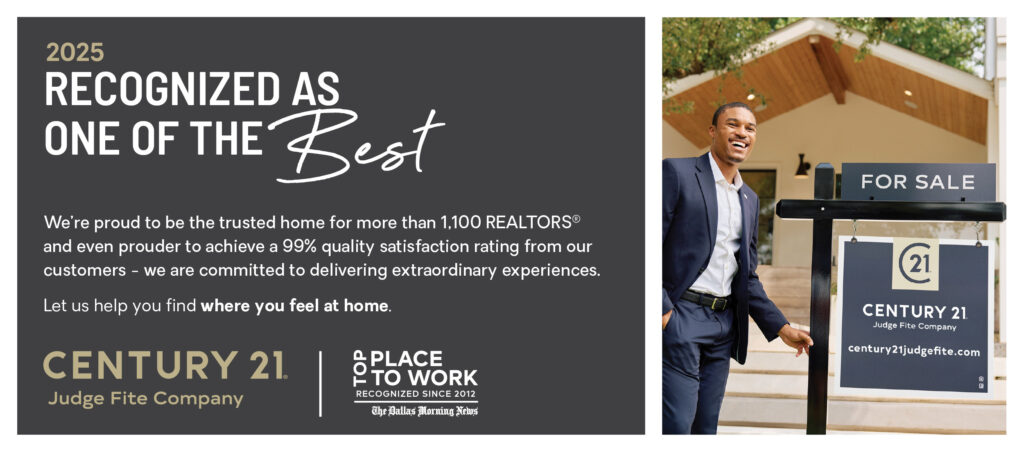 DALLAS/FORT WORTH, TX – CENTURY 21 Judge Fite Company is proud to announce its No. 2 ranking among the Top 100 Places to Work by The Dallas Morning News in the large real estate company category. This milestone marks more than 10 consecutive years of recognition on this prestigious list, underscoring the company’s unwavering commitment to a culture where people thrive.